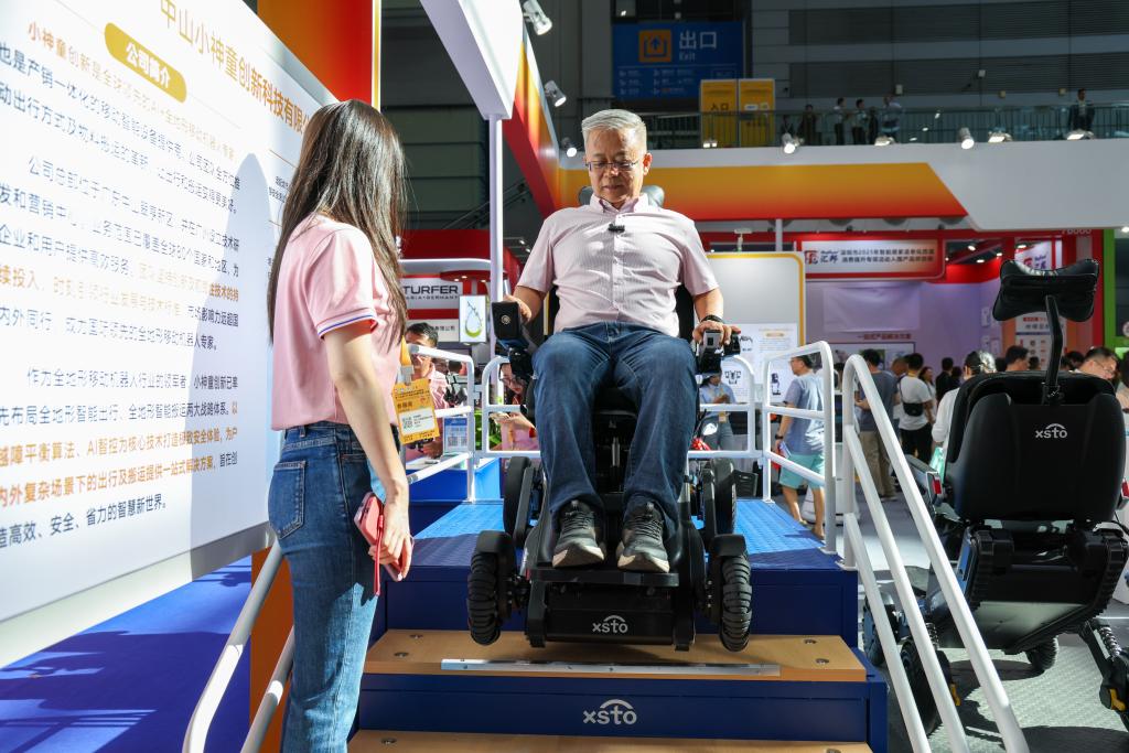 现在,不雅众正在展会现场体验一款能够上下楼梯的智能出行机械人。